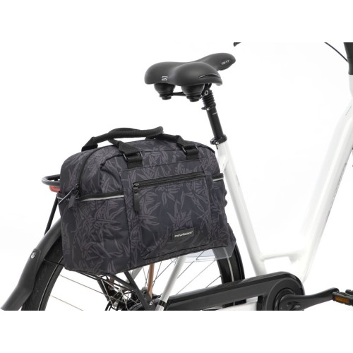 De fietstas wordt aan de bagagedrager bevestigd met New Looxs kunststof haken. Dat maakt deze tas geschikt voor vrijwel alle fietsen, ook elektrische. Je kunt de tas extra vastzetten met het klittenbandje tussen de haken. Als je de tas van de fiets haalt, dek je de haken af met een ritsvakje. Hierdoor heb je geen last meer van de haken en ziet de tas er uit als een gewone schoudertas!